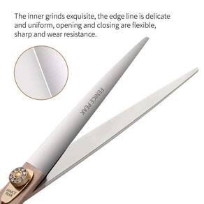 Tesoura de corte reto profissional para cães de estimação Fenice Peak Japan Import 440C aço inoxidável ouro rosa Tipo de item: Tesoura de corte para animais de estimação Material: 100% aço inoxidável 440C Tamanho: 18/19/20 cm Incluindo: 1 tesoura, 1 pano de limpeza, 1 bolsa - Material: Feito de liga de aço inoxidável de alta qualidade à mão. Com fórmula de aço exclusiva, tecnologia de produção requintada e rigorosos requisitos de afiação, fazemos as tesouras com alta dureza e durabilidade - Cabo: Com as lâminas afiadas, o material sólido, a tecnologia de parafuso e a ergonomia do anel de dedo, as tesouras são confortáveis, suaves e silenciosas, cada par de tesouras deve passar por uma seleção rigorosa e inspeção repetida - Escopo: adequado para qualquer barbeiro de alta qualidade e trabalhadores de beleza, bem como famílias, você pode cortar facilmente pelos de animais de estimação em uma aparência dimensional como quiser sem nenhuma técnica sofisticada. - Lista de peças. O conjunto vem com 1 tesoura, 1 pano de limpeza, 1 bolsa - Serviço pós-venda. Somos um fabricante profissional, muito confiante na qualidade dos produtos, por isso fornecemos devolução incondicional. Se você não estiver satisfeito com nossos produtos, o vendedor para obter uma substituição ou reembolso.