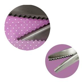 De acabamento diferenciado e um toque delicado em seu trabalho tesoura de aço inoxidável de ótima qualidade e durabilidade. Indicada para Patchwork, Scrapbook, Artesanato.