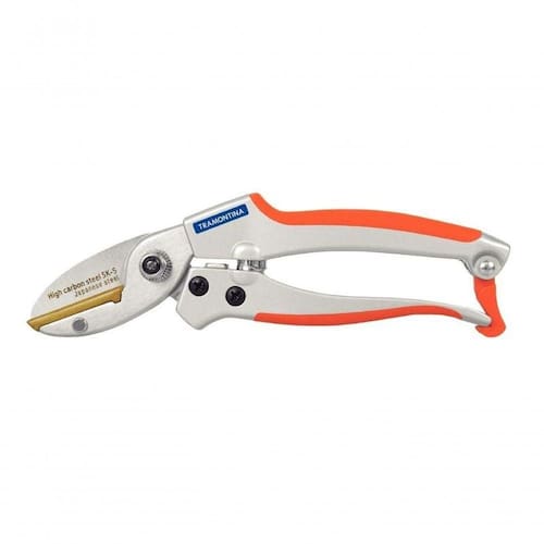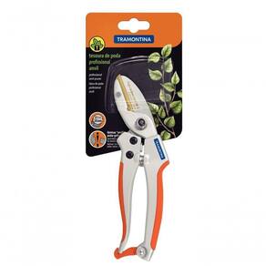 Para realizar a poda de frutíferas, flores e plantas ornamentais com o mínimo esforço, você precisa conhecer a tesoura de poda profissional tipo anvil Tramontina em aço com cabo emborrachado. Ela tem um cabo emborrachado e com formato anatômico que se encaixa perfeitamente na sua mão e proporciona maior conforto, e possui mola para dar a pressão necessária ao corte com o mínimo esforço. Assim, você irá podar e cortar galhos secos com muito mais conforto. Uma tesoura indispensável para seu trabalho de jardinagem!
