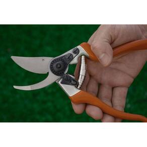 Se você deseja um cuidado profissional para o seu jardim irá precisar da Tesoura de Poda Profissional Tramontina em Aço com Cabo Emborrachado. Ela possui uma lâmina extremamente afiada de alta qualidade, ideal para a poda de frutíferas, flores e plantas ornamentais. E o cabo anatômico e emborrachado proporciona maior conforto e precisão durante o trabalho. Com essa ferramenta seu jardim ficará ainda mais bem cuidado. - Tesoura leve, proporcionando melhor agilidade no uso.- Lâminas em aço carbono temperado, proporcionando maior durabilidade do fio e um corte mais preciso e macio.- Ajuste de aproximação entre as lâminas.- 2 Níveis de abertura das lâminas.- Estrutura maciça em alumínio forjado.- Cabo anatômico e ergonômico proporcionando conforto ao operador.- Batente emborrachado, amortecendo o impacto de fechamento das lâminas.- Trava de segurança para fechamento das lâminas quando não estão em uso.- Diâmetro de corte máximo admitido: 20 mm.- Tecnologia Bypass (corte cruzado). Indicado para galhos verdes. Durante o corte, ocorre o cruzamento entre lâmina e contra-lâmina. Possibilita um corte preciso e sem rebarbas, que não deixa marcas no galho e facilita a cicatrização. Observações - A tesoura é própria para poda de frutíferas, flores e plantas ornamentais.- Conservar a ferramenta limpa, secando-a depois do uso e aplicando gotas de óleo nas lâminas e articulações.- Cuidado: A lâmina é afiada. O contato pode resultar lesões. Manuseie com cuidado e mantenha fora de alcançe das crianças.- Para descarte dos produtos e embalagens siga as orientações de reciclagem vigentes. Características Gerais EAN13 7891117097815 DUN14 17891117097812 NCM 8201.50.00 Peso Líquido 0,2740 kg. Peso Bruto 0,2890 kg. Metragem 0,000814 m³. Dimensões Embalagem (Compr. X Larg. X Alt.) 275x 105x 31 mm. Dimensões Produto (Compr. X Larg. X Alt.) 215x 65x 20 mm. Cor 1 FFA500 Hexa