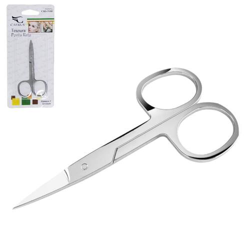 Tesoura De Unha De Inox Com Ponta Reta 9cm Na Cartela