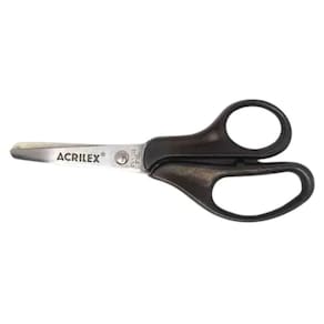 Tesoura Escolar 13cm Ponta Redonda Acrilex Preto Tesoura Escolar 13cm Ponta Redonda ACRILEX Preto - A Tesoura Escolar 13 cm Ponta Redonda da marca ACRILEX é ideal para uso escolar ou no escritório, combinando segurança, praticidade e qualidade. A ponta arredondada oferece proteção para menores de 6 anos e o cabo permite empunhadura confortável. Fabricada com lâmina de aço inoxidável e cabo em plástico termoplástico, entrega desempenho estável nas atividades de corte de papel, cartolina e materiais escolares. A FRAME PAPELARIA, com mais de 30 anos de experiência em material escolar e de escritório, garante seleção rigorosa de produtos, atendimento de qualidade e entrega segura. Características: