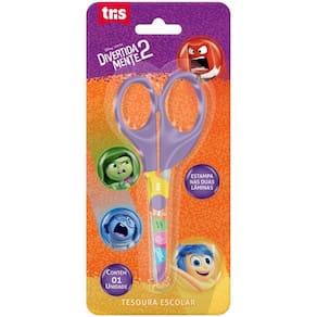 Com pontas arredondadas e cabo resistente em PP, a tesoura Divertidamente possui as lâminas decoradas, 13cm de comprimento total e 1,5mm de espessura de lâmina.
