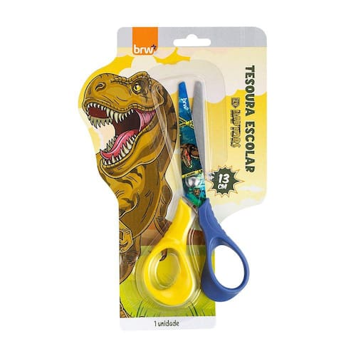 Tesoura Escolar Infantil Dinoussauro Corte Redondo 13cm BRW