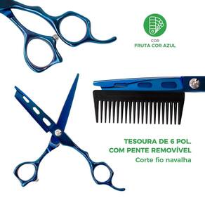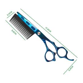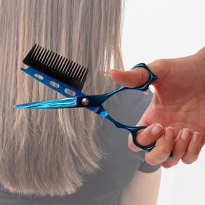 Tesoura de corte de cabelo com pente integrado, a ferramenta perfeita para um corte de cabelo preciso e eficiente em casa ou no salão. Com design ergonômico e lâminas afiadas em aço, essa tesoura oferece um corte suave e uniforme. Especificações Técnicas: - Pente Integrado - Lâminas de Aço - Fio navalha: possuem um corte convexo e extremamente afiado - Com parafuso ajustável - Design Ergonômico - Com apoio para os dedos - Cor: Azul vibrante com acabamento cromado - Versatilidade: e doméstico - Tamanho: 7 Polegadas - Dimensões pente: 2,4cm x 6,8cm - Dimensões tesoura: 5,4cm x 17,8cm Marca: Não Informado Ean: 7899744093286