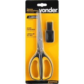 Conteúdo da embalagem: 1 Tesoura multicamadas. Acompanha 1 escova para limpeza.