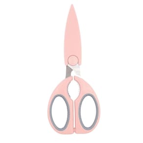 Especificações: Medidas: 9 x 21 cm Cor: Rosa Material da lâmina: Aço inoxidável Material do punho: Plástico Contém: 1 Tesoura de Cozinha e uma capa de proteção na lâmina.