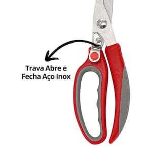 Tesoura Multiuso Aço Inox Prime Com Trava Frango e Peixes