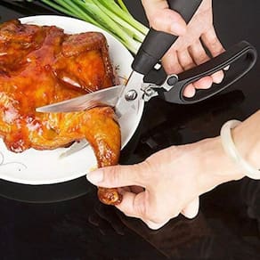 Facilite o preparo dos alimentos com mais segurança e precisão usando a Tesoura Multiuso com Trava Abre e Fecha. Projetada para cortes pesados na cozinha, essa tesoura é ideal para cortar frango, barbatanas de peixe, cartilagens, vegetais duros e até embalagens resistentes com eficiência e controle.