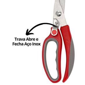 Tesoura Multiuso Aço Inox Prime Com Trava Frango e Peixes
