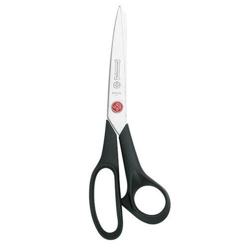 TESOURA P/ ESCRITÓRIO REF. 660 - 8 1/2 POLEGADAS - PONTO VERMELHO - MUNDIAL Indicada para cortes de fio e refile. de uso doméstico e profissional. Pode ser utilizada nos setores de costura e calçadista. Descrição - Medidas: 21.6 cm - Peso: 73g - Lâmina: Reta - Tipo de fio: Liso - Cabo: Polipropileno - Material: Aço Inox - Acabamento: Acetinado e Polido