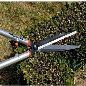 Tesoura profissional de alta qualidade com hastes longas, sendo indicada para trabalhos em parques, jardins e viveiros.