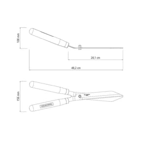 Um jardim com belas plantas, grama, cerca-viva e flores dão aquele toque gostoso de natureza em nossa casa, mas exigem manutenção. E para que você consiga apreciar todos os benefícios proporcionados por essas lindas plantas, é necessário ter a ferramenta certa para apará-las. Por isso, você precisa conhecer a Tesoura para Cerca-Viva Tramontina com Lâmina Serrilhada Metálica e Cabo de Madeira. Sua lâmina serrilhada de alta qualidade irá facilitar o corte ou desbaste de arbustos e grama. E se você tiver um talento artístico poderá utilizá-la para a topiaria e deixar o seu jardim com os mais variados formatos de corte e acabamento. Com ela, seu jardim irá ficar muito mais bonito! - A tesoura é temperada em todo o corpo da peça, proporcionando maior resistência e menor desgaste durante o uso.- Lâminas serrilhadas fabricadas em aço carbono especial de alta qualidade.- A lâmina serrilhada possibilita cortar pequenos galhos.- A afiação das lâminas é feita em máquinas CNC, proporcionando excelente durabilidade do fio e um corte mais preciso e macio.- O cabo desta ferramenta, além de possuir ótima resistência, é produzido com madeira de origem renovável.- Cabo com acabamento envernizado, para um melhor acabamento e apresentação do produto. A camada protetora em verniz incolor realça sua tonalidade, concedendo brilho e um toque mais liso ao produto.- Leve e prática no uso. Observações - A tesoura é própria para desbaste e acabamento de cerca-viva, arbustos e para aparar a grama. Também pode ser utilizado na topiaria (arte de podar plantas em formas ornamentais).- Conservar a ferramenta limpa, secando-a depois de lavá-la. Aplique fina camada de óleo sobre as lâminas e articulações.- Cuidado: A lâmina é afiada. O contato pode resultar lesões. Manuseie com cuidado e mantenha fora de alcançe das crianças.- Para descarte dos produtos e embalagens siga as orientações de reciclagem vigentes. Características Gerais EAN13 7891117058090 DUN14 17891117058097 NCM 8201.60.00 Peso Líquido 0,5680 kg. Peso Bruto 0,5730 kg. Metragem 0,002177 m³. Dimensões Embalagem (Compr. X Larg. X Alt.) 486x 159x 108 mm. Dimensões Produto (Compr. X Larg. X Alt.) 482x 156x 108 mm. Cor 1 F0E68C Hexa