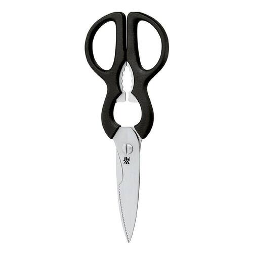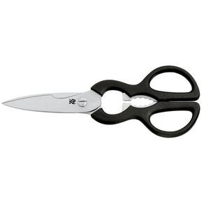 Tesoura Para Cozinha Em Aço Inox Wmf Preta Esta tesoura é perfeita para facilitar as tarefas do dia a dia. Se encante com a nova tesoura multifuncional para cozinha da WMF. Com design inteligente e alças confortáveis que proporcionam o corte eficiente sem o menor esforço. Além de uma tesoura que contém micro serras que mantém a lâmina posicionada ao alimento sem escorregar. Outro diferencial desta tesoura, é a possibilidade de abrir garrafas com extrema eficiência e rapidez e tampas de rosca. Ficha técnica:- Código: 4080011418- Marca: WMF- Conteúdo da Embalagem: 1 Tesoura- Material: Aço inox- Cor: Preto- Peso: 170g- Dimensões: 2cm x 9cm x 20,5cm (AxLxP)- Garantia: 2 Anos Sobre a Marca - Fundada em 1853, a alemã WMF conta com mais de 150 anos de tradição na confecção do melhor para a cozinha, mesa e bar, sendo ainda hoje uma das poucas marcas que mantém grande parte da sua produção na Alemanha. Da primeira loja, em 1868, até hoje, a marca vem investindo em inovação e tecnologia, o que culminou, em 1930, na descoberta e utilização do seu principal composto, o Cromargan, que é um aço 18/10 patenteado, de maior resistência, durabilidade e brilho, garantindo produtos únicos no mercado. Além disso, em 2014, a WMF, focando ainda mais no crescimento da marca, decidiu abrir para o mercado mundial e hoje conta com quase 6000 funcionários distribuídos em mais de 40 locais em todo o mundo. Garantia - 2 anos - Contra defeito de fabricação Mais Informações - Medidas aproximadas do produto: Altura: 2cm Largura: 9cm Comprimento: 20,5cm Peso: 170gr