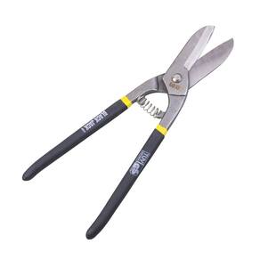 Tesoura para lata Reforçada e corte reto Fabricado em aço cromo vanádio Cabo emborrachado proporciona alta precisão no corte Possui mola para reduzir a fadiga no uso Utilizada para cortar chapas não endurecidas em montagens de calhas, trabalhos em funilarias, caldeiraria e serralheria industrial