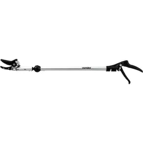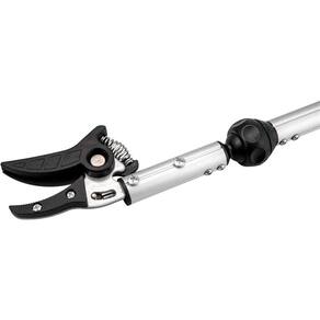 Destaques: Leve, prática e de fácil manuseio. Possui gatilho com trava e sistema lateral de ajuste que permite girar o cabo em 180. É possível também ajustar o ângulo da lâmina, facilitando ainda mais a operação. Conta com lâmina com garras de plástico que auxiliam a pega no galho a ser podado, além de evitar derrubar a fruta.