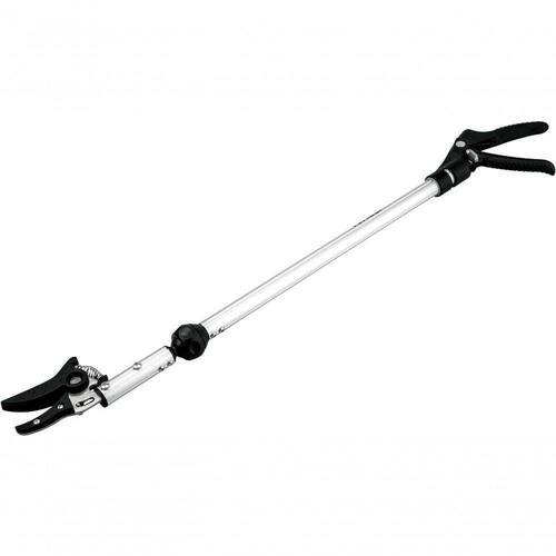 Leve, prática e de fácil manuseio. Possui gatilho com trava e sistema lateral de ajuste que permite girar o cabo em 180. É possível também ajustar o ângulo da lâmina, facilitando ainda mais a operação. Conta com lâmina com garras de plástico que auxiliam a pega no galho a ser podado, além de evitar derrubar a fruta.