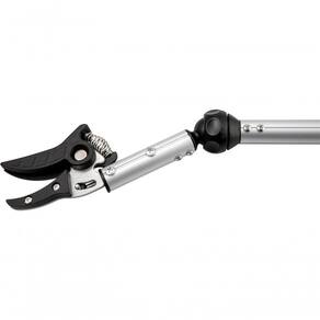 Leve, prática e de fácil manuseio. Possui gatilho com trava e sistema lateral de ajuste que permite girar o cabo em 180. É possível também ajustar o ângulo da lâmina, facilitando ainda mais a operação. Conta com lâmina com garras de plástico que auxiliam a pega no galho a ser podado, além de evitar derrubar a fruta.