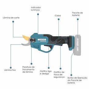 Tesoura poda wesco 18v ws8360.9 + 1bat 2ah carreg + tesoura Tesoura poda a bateria com 18v da wesco modelo ws8360.9 com motor brushless Com kit de bateria 2,0ah e carregador wesco Esta é o incrível lançamento da wesco, a tesoura de poda a bateria, ws8360. Uma tesoura muito forte e resistente, pronta para o trabalho mais difícil. Possui motor brushless, sem escovas de carvão, garantindo maior durabilidade do produto. A ws8360 possui lâmina revestida de titânio para melhor desempenho, reduzindo o atrito e proporcionando cortes suaves. Também protege contra corrosão por ferrugem. Design compacto e ergonômico, com baixo peso e muito fácil de manipular. Dados técnicos: Marca: wesco; Voltagem da bateria: 18v; Modelo detalhado: ws8360.9; Revestimento: revestido de titânio; Tipo de abertura: 2 tipos de abertura; Abertura de corte: 2,54cm; : de bloqueio duplo. Itens que acompanham a tesoura: -01 kit com 01 bateria 18v e 2,0ah e carregador bivolt ws1105 ; -01 tesoura poda marca disponível no momento do pedido ; -01 par de luvas. Dados técnicos do kit ws1105: - amperagem: 2ah; - voltagem: 18 volts; - frequência nominal: 50/60hz - possui 02 pinos - peso: 0,44kg - : 90 dias. Marca: Não Informado