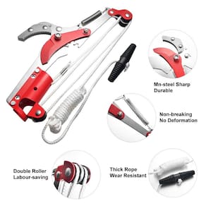 Esta Tesoura podadora de galhos de árvores extensível é perfeito para cortar galhos altos sem ter que subir em escada. A lâmina de poda retificada com precisão totalmente endurecida permanece mesmo durante uso pesado. Acomoda galhos de até 3cm de espessura. afiado em 3 lados, para facilitar a remoção de galhos mais grossos de forma rápida e fácil. Fácil de instalar e remover, sem necessidade de ferramenta. Sistema de polia dupla para cortar galhos densos com o mínimo de esforço, economizando pelo menos 25% de esforço. Resistente ao uso continuo. Cor: vermelho Material: aço SK5 Tamanho: 44*22*2cm Lâmina do Serrote: 29 cm Peso Total: 700 g Cor: Vermelho Conteúdo do pacote: 1 * tesoura com Serrote de alta altitude, não acompanha o Cabo longo