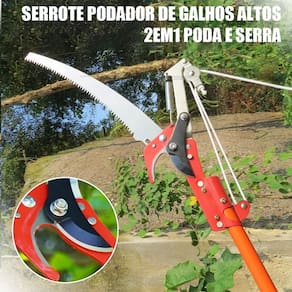 Informações Gerais: Tesoura com Serrote extensível para cortar Galhos de árvores com alta altitude, Tipo de Tesoura podadora: Bypass
