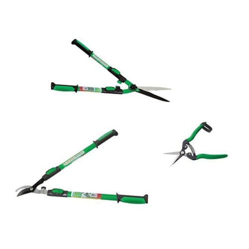 Conteúdo: 1 Tesoura de podar galhos cabo telescópico Trapp + 1 Tesoura de podar Cerca Viva cabo telescópico Trapp + 1 Tesoura para colheita de frutas Trapp.