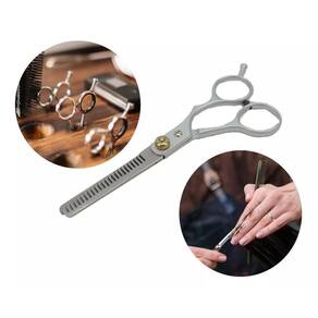 Composição em aço inox 304, essa tesoura possui acabamento leve e resistente. Seu fio de lâmina em navalha desfiadeira permite um corte preciso e suave, garantindo resultados profissionais.