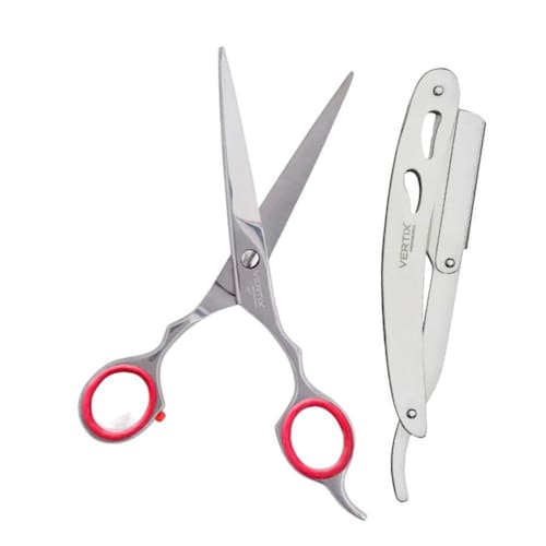 O cabo possui apoio de dedo e amortecedor de impacto de silicone para maior conforto no manuseio e as lâminas possuem parafuso ajustável para determinar a melhor tensão de corte da tesoura para cortes retos e simétricos.