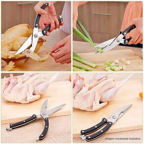 A tesoura ideal para trinchar e cortar ossos e articulações de aves, além de cortes precisos em frangos e peixes, também é utilizada em legumes e frutas, cenoura, pepino, batata e praticamente qualquer outro alimento que se utilize na cozinha.
