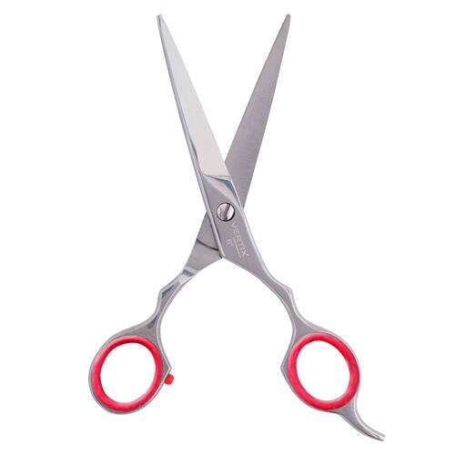A Tesoura Vertix Red Laser 6,5, com fio serrilhado (laser) que segura a mecha de cabelo e evita que ela escorregue pela tesoura. O cabo possui apoio de dedo e amortecedor de impacto de silicone para maior conforto no manuseio e as lâminas possuem parafuso ajustável para determinar a melhor tensão de corte da tesoura