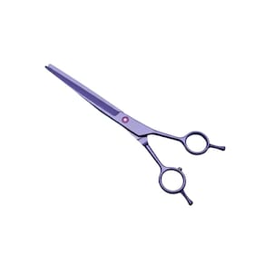 Ideal para profissionais de estética canina, a tesoura oferece um corte preciso e eficiente em diferentes tipos de pelagem, proporcionando resultados de alta qualidade. O modelo Tubarão é especialmente indicado para tosas e desbastes, permitindo um acabamento impecável, com a combinação de resistência e elegância do seu acabamento roxo