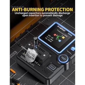 Testador de transistor FNIRSI LCR-P1 O testador de transistor FNIRSI LCR-P1 pode ser utilizado para a medição e análise de NPN, PNP, triodo, MOS, transistor de efeito de campo (FET), diodo, diodo Zener, capacitor, resistor, indutor, bateria, etc. O detector de transistor LCR-P1 FNIRSI suporta a análise do código de protocolo infravermelho NEC, para que possa ser utilizado para depuração e manutenção de equipamentos de controle remoto. Tela colorida de 1,4 polegadas, claramente visível, Bateria de 300 mAh, interface tipo C para carregamento e transmissão de dados, atualização de firmware. O testador esr de resistência de capacitância identifica automaticamente capacitores não descarregados e os descarrega automaticamente no momento da inserção e travamento, evitando efetivamente queimaduras acidentais. - Testador de capacitor de transistor: o testador de transistor FNIRSI LCR-P1 pode ser utilizado para a medição e análise de componentes de patch, NPN, PNP, triodo, MOS, transistor de efeito de campo (FET), diodo, diodo Zener, capacitor, resistor, indutor, bateria, etc - Design amigável: o design do assento substituível permite a medição de pequenos componentes de precisão e dispositivos de alta potência. Tela colorida de 1,44 polegadas, bateria de 300 mAh, interface tipo C para carregamento e transmissão de dados, atualização de firmware - Mecanismo de proteção antiqueima: o testador esr de resistência à capacitância identifica automaticamente capacitores não descarregados e os descarrega automaticamente no momento da inserção e travamento, evitando efetivamente queimaduras acidentais - Forma de onda infravermelha NEC: o detector de transistor FNIRSI LCR-P1 suporta a análise do código de protocolo infravermelho NEC, para que possa ser utilizado para depuração e manutenção de equipamentos de controle remoto e fornece aos usuários detecção e análise abrangentes - Identificação automática inteligente: testador de capacitador, detecção automática inteligente de definição e parâmetros dos pinos dos componentes, e pode identificar rapidamente seus modelos e especificações, melhorando assim muito a eficiência do trabalho
