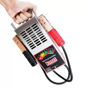 Teste de bateria analógico (500 amperes) Teste de bateria eletrônico 500 amperes - kitest Caixa de aço inox polida; Garras grandes com ponta de latão para um melhor contato; Escala de 0 a 16 volts; Teste a carga de bateria; Testa o regulador de tensão;