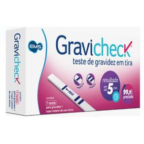 Teste de Gravidez Gravicheck em Tira com 1 Unidade O Teste de Gravidez Gravicheck em Tira é um teste para ser feito em casa, logo que a menstruação estiver atrasada e haja suspeita de gravidez. A sensibilidade de 25mUI/ml garante resultados mais precisos pois detecta quantidades mínimas de hormônio na urina. Assim, o teste pode ser realizado a qualquer hora do dia. Tenha mais precisão com o Teste de Gravidez EMS Gravicheck.