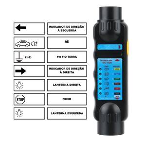 Teste de tomada de engate reboque trailer carretinha 7 pinos 12v Teste de tomada de engate reboque trailer carretinha 7 pinos 12v O teste de tomada de engate serve principalmente para verificar se as ligações de cabeamento foram feitas corretamente de acordo com as normas e especificações técnicas exigidas para o sistema de engate. Ela garante que cada pino da tomada está conectado à função elétrica correta como luzes de freio, indicadores de direção, etc. , conforme as normas vigentes. Essa verificação é essencial para assegurar que o sistema elétrico está em conformidade com as exigências de segurança e operação, prevenindo possíveis falhas ou mau funcionamento durante o uso. Além disso, ajuda a garantir que as luzes e outros dispositivos do reboque funcionarão corretamente quando conectados ao veículo, o que é crucial para a segurança na estrada. Importante: se ao conectar a tomada de teste ao seu engate ela não acender, isso indica que a instalação do cabeamento elétrico não está correta. É necessário corrigir a instalação para que atenda às normas e especificações técnicas exigidas pelo conselho nacional de trânsito contran . Principais funções de uso: Manutenção preventiva: realizar testes regulares pode ajudar a detectar e corrigir problemas antes que se tornem sérios, evitando falhas inesperadas durante o uso do reboque. Diagnóstico de problemas: ajuda a identificar problemas elétricos, como fios desconectados, curto-circuitos ou falhas em componentes, que possam impedir o funcionamento adequado das luzes do reboque. Verificação das conexões elétricas: garante que todas as conexões elétricas entre o veículo e o reboque estão funcionando corretamente. Isso inclui a verificação de luzes de freio, indicadores de direção, luzes de ré, luzes de posição e, em alguns casos, a alimentação elétrica para o reboque. Este testador tem um lado para conectar o plugue de 7 pinos de um trailer e outro lado para conectar o soquete da tomada de engate 7 pinos de um carro. Ideal no setor comercial e privado, para oficinas, aluguel de carros e reboques, comércio de acessórios, etc. Feito de plástico abs e cobre, que é durável e pode ser por muito tempo durante sua longa vida útil. O design ergonômico do soquete de reboque de 7 pinos garantirá seu trabalho de alto desempenho. Este testador de reboques pode ajudá-lo a verificar rapidamente a falha do circuito dos veículos e do sistema elétrico dos reboques. Para que serve o teste de tomada de engate Se você é um proprietário de um trailer, carretinha ou qualquer outro veículo que necessite de um engate, é importante saber se a tomada do engate está funcionando corretamente. O teste de tomada de engate é uma ferramenta que ajuda a verificar se a conexão elétrica entre o veículo e o trailer está funcionando adequadamente. O teste de tomada de engate é essencial para garantir que as luzes do trailer, como faróis, luzes de freio e luzes de sinalização, estejam funcionando corretamente. Além disso, ele também verifica se o sistema de freios elétricos do trailer está funcionando adequadamente. Como funciona o teste de tomada de engate O teste de tomada de engate é fácil de usar e não requer nenhuma habilidade técnica. Ele consiste em um dispositivo que é conectado à tomada do engate do veículo e que emite sinais sonoros e luminosos para indicar se a conexão elétrica está funcionando corretamente. Especificações: Tensão: 12v Material principal: abs e cobre Cor: preto fosco Tipo de item: ferramentas de diagnóstico Nome do item: trailer testador Tamanho: aprox. 20 5 4 cm Tipo de bateria: 9v acompanha o kit Imagem ilustrativa