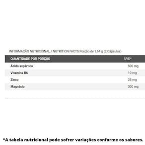 O ZMA Testo Booster é um suplemento composto por ingredientes bem concentrados que ajudam a otimizar os níveis de testosterona naturalmente, com isso ele auxilia no aumento da força física e recuperação muscular, esses ingredientes são o Zinco, Magnésio e a vitamina B6, porém os especialistas da Integralmedica adicionaram na formulação o Ácido Aspártico que é um aminoácido que auxilia no fortalecimento do sistema imunológico e também no estímulo da produção de testosterona.