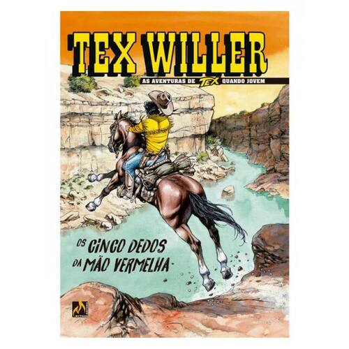 OS CINCO DEDOS DA MÃO VERMELHA A carreira do nosso jovem fora da lei está para sofrer uma guinada decisiva. Ouvindo as últimas palavras do amigo Joe Scott, um batedor do Exército agonizando em seus braços, Tex decide vingá-lo e, com a aprovação de militares e xerifes, pôr fim aos atos criminosos da Mão Vermelha, um grupo de cinco bandidos impiedosos que aterrorizam o Sudoeste. Mas antes ele deve identificar e localizar os assassinos, um por um. Na lista letal do vingador, os nomes são marcados a tiros. Mas a Mão Vermelha tem mil vidas e volta a assaltar e matar, acreditando ter eliminado Tex com uma armadilha mortal.