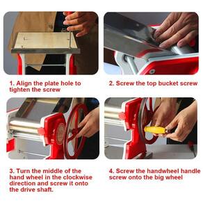Especificações: Cor: Prata e Vermelho, Material: Aço Inoxidável, Peso do Item: 13 kg, Material da Lâmina: Aço Inoxidável, Componentes Inclusos: 1 x máquina de fazer massas, Número de ajustes: 6, Modo de Operação: Manual, É seguro para lava-louças: Sim, É Elétrico: Sim, Número de discos: 2, Fabricante: KAHE, Dimensões do produto: 47,75 x 34 x 31,5 cm, Número do modelo: Commercial Pasta Machines Marca: Não Informado