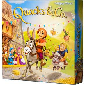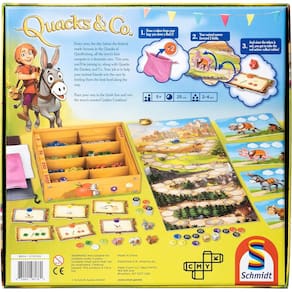 É dia de corrida em Quedlinburg e, com a combinação certa de comida e sorte, você montará sua montaria para a vitória e reivindicará o caldeirão dourado.Mit Quacks & Co. nach Quedlinburg apresenta uma jogabilidade semelhante a The Quacks of Quedlinburg, com cada jogador construindo seu próprio saco de fichas ao longo do jogo, depois sacando essas fichas para tentar se promover até a vitória.Cada jogador começa o jogo com sua montaria no início da pista e uma bolsa que contém quatro fichas de sonho, uma ficha amarela 1, duas fichas vermelhas 1 e uma ficha vermelha 2. Em um turno, você tira uma ficha de sua bolsa e a coloca no seu tabuleiro de animais. Se você tirar uma ficha colorida, coloque a ficha no seu tabuleiro de animais, avance seu animal na trilha tantos espaços quanto o número na ficha e, em seguida, execute o efeito dessa cor: fichas vermelhas você ganha 1-3 rubis, amarelo fichas permitem que você jogue um dado para um bônus aleatório, fichas verdes permitem que você dê outro turno ou devolva uma ficha comprada para sua bolsa, e fichas azuis permitem que você mova extra ou atualize uma ficha.Se você desenhar uma ficha de sonho, coloque-a em uma das nuvens do seu tabuleiro de animais. Depois de comprar e colocar uma terceira ficha de sonho, use todos os rubis em seu tabuleiro para comprar novas fichas - não há duas da mesma cor, lembre-se - então coloque essas novas fichas e todas as fichas compradas anteriormente em sua bolsa. Continue se revezando até que alguém chegue ao final da pista e vença!Mit Quacks & Co. nach Quedlinburg inclui um tabuleiro de jogo de dupla face para uma corrida mais curta ou mais longa; fichas laranja e roxa que fornecem novos poderes, como avançar tantos espaços quanto o número de rubis que você possui; e tabuleiros de ação de dupla face para cada tipo de ficha colorida, permitindo que você jogue com diferentes conjuntos de ações de jogo para jogo Marca: Schmidt Spiel
