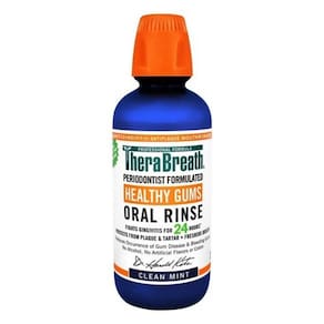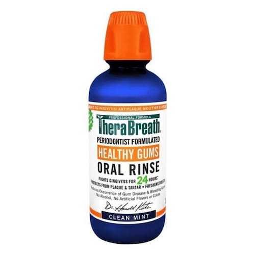Descrição do produto Benefícios do produto O TheraBreath Healthy Gums Oral Rinse é formulado por dentistas com poderosos ingredientes refrescantes. A fórmula sem álcool não queima nem irrita, e o refrescante Clean Mint Flavor é suave para bocas sensíveis. Ingredientes ativos: Cloreto de cetilpiridínio 0,05% (CPC) Objetivo: antigengivite/antiplaca Ingredientes inativos Água, sitol, xilitol, óleo de rícino hidrogenado PEG-40, sabor, ácido cítrico, hidróxido de sódio, bicarto de sódio, gluconato de zinco, clorito de sódio, citrato de sódio Sugestões Enxágue a boca por 1 minuto com uma tampa cheia. Gargareje com outra tampa cheia por 30 segundos para limpar a garganta, uma das principais fontes de mau hálito. Espere 5 minutos antes de comer. Use de manhã e à noite. Nota especial de especial interesse para: Diabéticos e mulheres grávidas Advertências e isenção de responsabilidade: 1. Oferecemos produtos de marca nacional que são produzidos de acordo com os padrões de fabricação estabelecidos pelos reguladores a preços baixos todos os dias. Não use produtos não comprovados e sem marca, que podem representar sérios riscos à sua saúde.