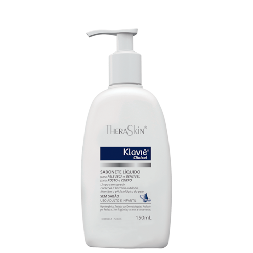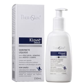 Sabonete líquido facial e corporal, para peles secas, sensíveis e sensibilizadas. Com agentes hidratantes, TheraSkin Klaviê Clinical promove uma limpeza suave, sem ressecar a pele.