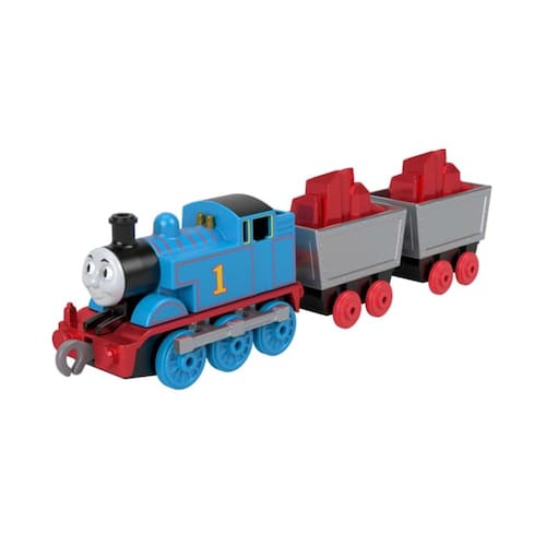 O clássico Thomas, em estilo heritage e escala 1:64, apresenta um acabamento premium e inclui dois carros de material rodante que são acoplados por meio de conectores de plástico. A carga vermelho-rubi é uma referência especial às cores da marca Mattel e também é a pedra preciosa tradicional dos aniversários de 80 anos. O motor é compatível com conjuntos de pista Thomas & Friends, adequados para jogo ou exibição. Conjuntos de pista e motores adicionais, veículos e licitações são vendidos separadamente.