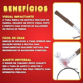 Além de complementar sua fantasia, a Tiara com Martelo Halloween da Cromus também pode ser utilizada como item decorativo em festas ou como um presente criativo para amigos e familiares apaixonados pelo universo do Halloween.