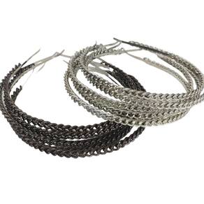 Tiara Corrente Elos Cartier Prata e Ródio Negro Belíssima Moda e Acessórios 7 mm 5 Unidades de Cada As Tiaras são acessórios delicados e femininos. Uma ótima opção para o look do dia a dia, deixando a mulher com um brilho e delicadeza. As tiaras femininas têm uma proposta de romantismo. Além de ser funcional, já que evitam que os fios mais rebeldes saiam do lugar, é possível criar lindos penteados com este acessório para cabelo. As tiaras chegaram com todo glamour para embelezar ainda mais a mulher com estilo romântico. Com cabelo solto, as tiaras deixam o visual mais despojado. Os coques e opções com o cabelo preso são para quem deseja um look mais elegante. Existem diversos modelos e opções de tiaras femininas: Tiaras com Pedras, Tiaras Douradas, Tiaras com Pérolas. Tiaras de Luxo toda cravejada na Pedra de Zircônia, uma verdadeira joia para seus cabelos. Nossa tiara para cabelo prata ou tiara de metal é feita com corrente com elos e um aro de metal. Informações Técnicas Material Tiara: 100% Ferro Material Corrente: Alumínio Cor: Prateado e Ródio Negro Circunferência: 39 cm Espessura da Tiara: 7 mm Peso: 4 gramas Origem: Brasil Marca: Belíssima Acessórios Uso : Casual : De Fabrica 90 dias Recomendações: Cuidados para maior durabilidade da peça: Nunca utilize produtos de limpeza ou abrasivos para limpar a peça. Evite contato com água, cremes, produtos químicos, suor excessivo e perfume. Cuidado com os impactos e quedas, pois poderá danificar a peça. Buscamos disponibilizar imagens dos produtos o mais fiel possível, porém pode haver variações de cores devido às configurações do monitor do usuário. A belíssima acessórios possui valores sólidos e voltados à satisfação do cliente, conquistou uma posição nova no mercado, pois trabalhamos somente com produtos confiáveis no segmento em que atua. Somos fabricantes de bijuterias finas e revendedores de semijoias, prata 925 e acessórios Temos como prioridade a busca constante pela excelência na venda de produtos e no relacionamento com os clientes, colaboradores, parceiros e fornecedores. Ficha técnica - gênero: feminino - comprimento: 15 - tipo de acessório: tiara - cor: não se aplica - cor predominante: não se aplica - cor: prata Marca: Não Informado