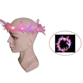 Fantasia Tiara de penas com luz ledKit 8 unidadesCaracterísticas Gerais:Material: PenasModo de Luz: Rápida-Flashing Lenta-Flashing, Composição: 40% Penas, 40% Metal, 20% Poliéster.É possível regular o tamanho.TESTADO ANTES DO ENVIO.Funcionamento: A bateria