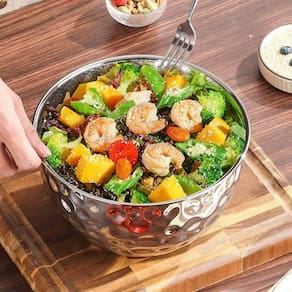 Sirva e organize seus alimentos com a tigela Ideal Importados BSL3881-1, ideal para mesa posta, cozinha e buffet. Com capacidade de 2,5 litros, é multiuso e versátil para saladas, frutas, sobremesas e refeições em geral. O material em inox resistente facilita a higienização, mantém o brilho e garante uso prolongado no dia a dia ou em ambientes profissionais. Seu acabamento em prata agrega um visual elegante para compor mesas e buffets com apresentação refinada. Uma opção prática para quem busca funcionalidade aliada a um design moderno para servir diferentes preparações.