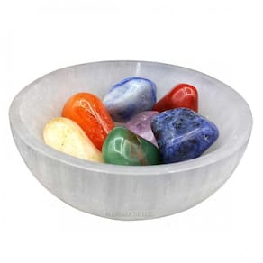 Tigela De Selenita Natural 10cm + 7 Pedras Dos Chakras