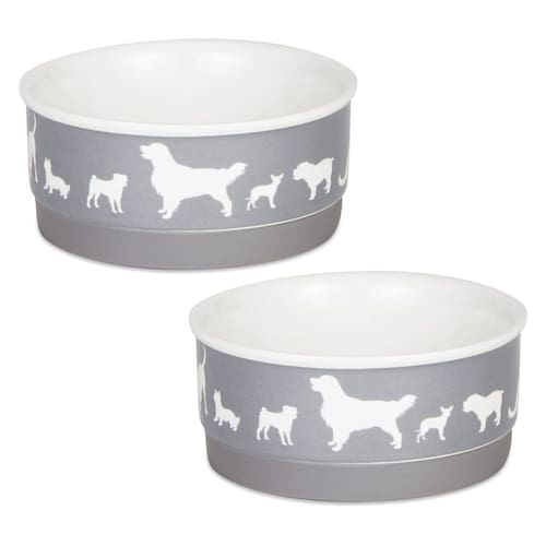Bone Dry Tigela e vasilha de cerâmica Dog Bone para animais de estimação, pequeno, 4,25 x 2, cinza, 2 unidades