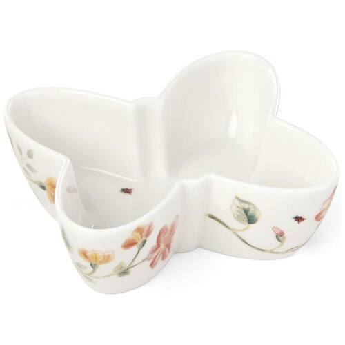 Compartilhe seus doces e guloseimas com estilo usando a tigela Butterfly Meadow. Com seu formato delicado de borboleta e feita de porcelana cerâmica branca durável, esta tigela é uma adição encantadora a qualquer coleção de louças. Com dimensões de 10 cm de comprimento, 2,5 cm de altura e 11,5 cm de largura, ela é ideal para servir pequenas porções, como doces, petiscos ou sobremesas.