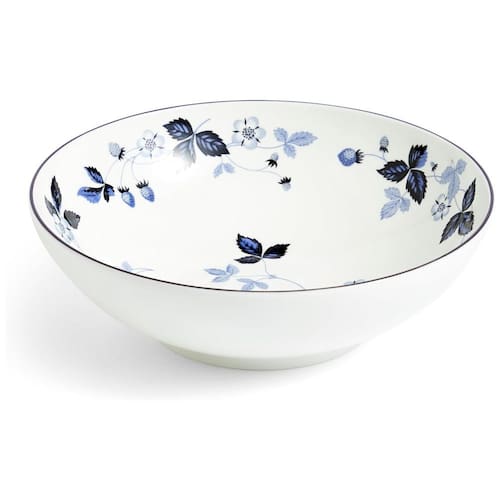 A Wedgwood apresenta a coleção Wild Strawberry Inky Blue, uma nova interpretação de um clássico que já encanta há 60 anos. Esta tigela de cereal é feita de porcelana fina e branca pura, adornada com o renomado padrão Wild Strawberry em tons de azul profundo e vibrante, refletindo as tradições da cerâmica inglesa.